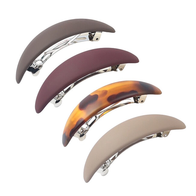 Dankzij de tijdloze kleuren – van mat neutraal tot trendy tortoise – combineer je ze moeiteloos met elke outfit. Ideaal voor dagelijks gebruik, werk of een snelle updo.