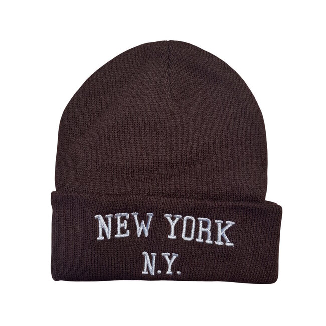 Hoe leuk, deze New York beanie/muts. Draag hem als het koud is of als accessoire, het kan allemaal! De muts is zacht met een brede band met geborduurde tekst.