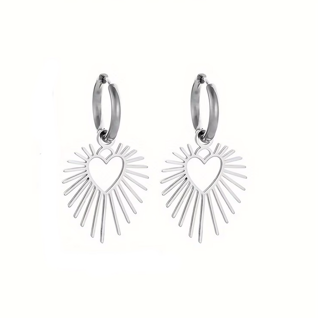 Deze oorbellen stralen liefde, kracht en elegantie uit. Het hartvormige detail in combinatie met de zonachtige lijnen geeft een unieke, moderne look. Draag ze solo als statement of combineer ze met andere sieraden voor een trendy ear-party.