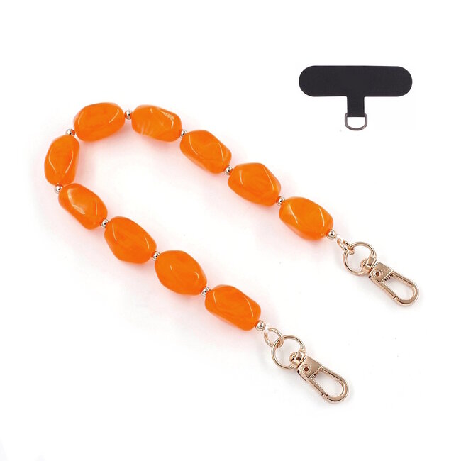 Telefoonkoord - Kralen Oranje | Lengte 37 cm | Acryl/Bijoux